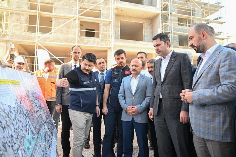 Bir dizi program için kente gelen Bakan Kurum, Atatürk Bulvarı'nda Emlak Konut tarafından yaptırılan konutların inşaat alanında incelemelerde bulundu.