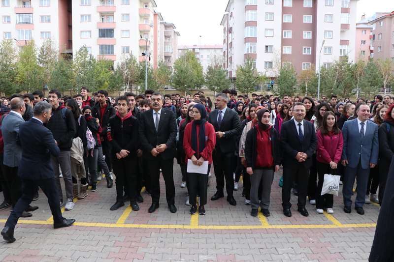 Bakan Tekin, kentteki Türk Telekom Palandöken Nurettin Topçu Sosyal Bilimler Lisesini ziyaret edip öğretmen ve öğrencilerle bir araya geldi.