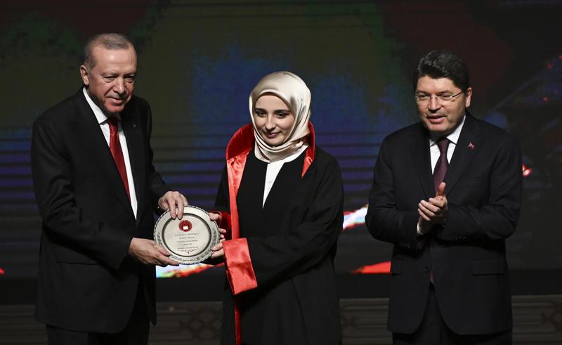 "Gerçekleştirdiğiniz reformlarla temel hak ve özgürlükleri genişlettiniz. Ülkemizi yüksek standartlı bir demokrasiye kavuşturarak demokratik hukuk devletini tahkim ettiniz. Bugün hatırlamak bile istemediğimiz 'Sizi buraya tıkan kuvvet böyle istiyor' diyen 27 Mayıs'ın yargı anlayışını, 'Bir sağdan bir soldan astık' diyen 12 Eylül'ün adalet anlayışını, postmodern darbecilerin karşısında 'hazır ol'da duran 28 Şubat'ın hukuk anlayışını tarihe gömerek, 15 Temmuz gecesinde, demokrasi ve milli irade düşmanlarının karşısında milletiyle birlikte dimdik duran bir adalet anlayışının ve yargı sisteminin hakim kılınmasına liderlik ettiniz. Bugün ilk derecesiyle, istinafıyla, yüksek yargısıyla yargı sistemimiz milli iradeye saygı duyan, hukukun üstünlüğüne inanan, darbeciden de hesap soran, vesayetçiden de hesap soran, yolsuzluk yapandan da hesap soran tarafsız ve bağımsız bir anlayışa kavuşmuştur."