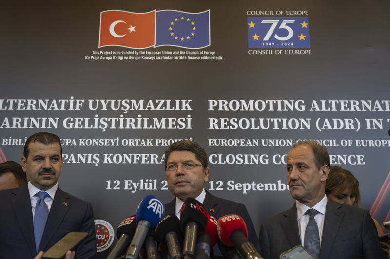 Bakan Tunç, Ankara'da, Türkiye'de Alternatif Uyuşmazlık Çözüm Yollarının Geliştirilmesi Projesi'nin kapanış konferansının ardından gazetecilerin sorularını yanıtladı ve açıklamalarda bulundu.