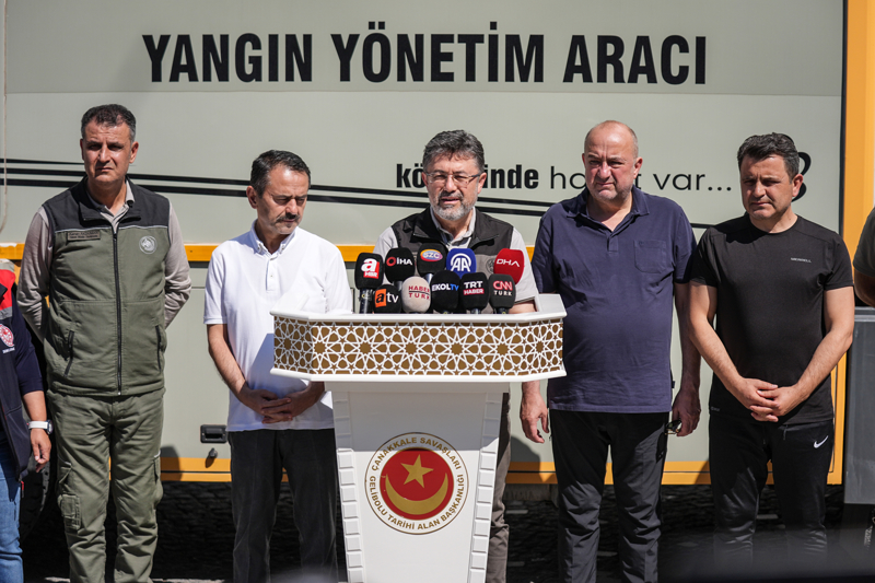 Bakan Yumaklı, Çanakkale Destanı Tanıtım Merkezi'nde oluşturulan koordinasyon merkezinde yaptığı açıklamada, yangınla alakalı son kontrolleri gerçekleştirdiklerini söyledi.