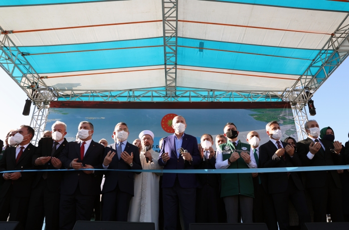 Son 19 yılda yine enerjide de yerli ve temiz enerji kaynaklarını değerlendirmek için 605 hidroelektrik santralini hizmete aldıklarını hatırlatan Erdoğan, "Ülkemizin kurulu güç kapasitesini 32 bin megavattan 100 bin megavata çıkarmak suretiyle kalkınmanın temel altyapısı olan elektrik enerjisinde herhangi bir sıkıntı yaşanmasının önüne geçtik. Üstelik bu güç artışının üçte ikisini yerli ve yenilenebilir kaynaklarla gerçekleştirdik." dedi.