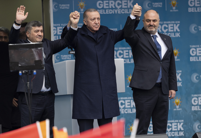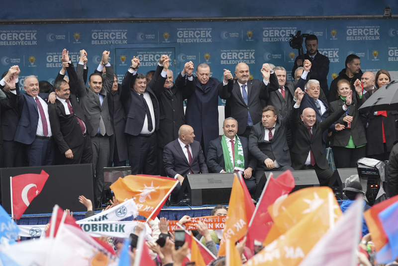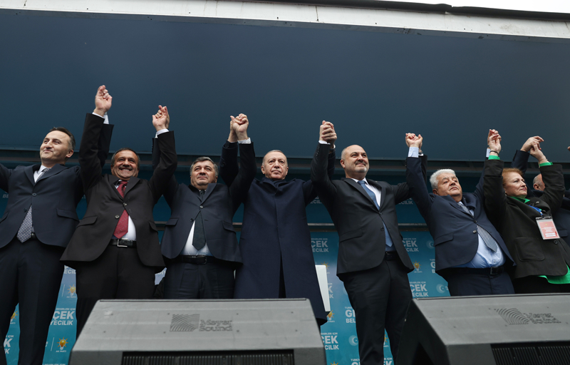 Yerel yönetimlerde şehre kazandırdıkları hizmetlere ilişkin video izleten Erdoğan, bu eserlerin amaçlarını, hüsnü niyetlerini ve gayretlerini ortaya koyduğunu, 31 Mart'tan sonra çok daha fazlasını yapacaklarını vurguladı.