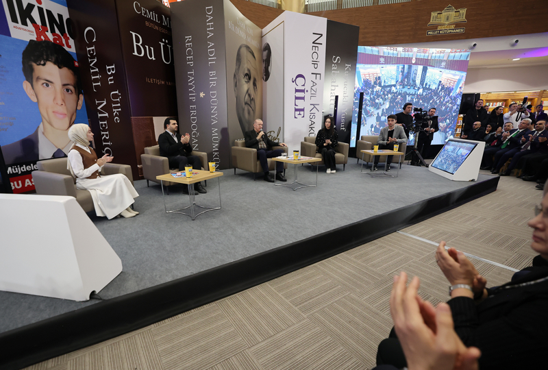 Ankara'daki Millet Kütüphanesi için birilerinin "yapamaz, edemez" dediğini anımsatan Erdoğan, "Yaptık ve şu anda dünyanın değişik yerlerinden gelen bütün devlet başkanları orayı gezdikleri zaman, hakikaten 'bu projenin bir örneği bize verilebilir mi' diyor. Biz de tabii yani bu tür şeyleri kıskanmıyoruz. Yeter ki alın, sizin ülkenizde de böyle bir projeyi uygulayın diyoruz." ifadelerini kullandı.