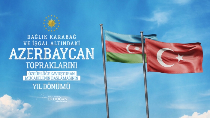 Erdoğan, Twitter'dan yaptığı paylaşımda, "Karabağ'ı ve işgal altındaki Azerbaycan topraklarını özgürlüğüne kavuşturan şanlı mücadelenin yıl dönümü Anım Günü'nde tüm şehitlerimizi rahmetle yad ediyorum. Qarabağ Azərbaycandır." ifadelerini kullandı.