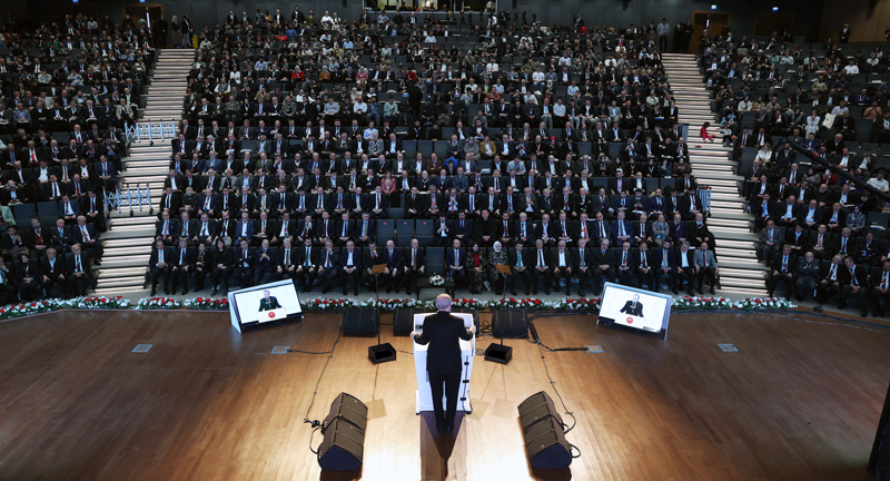 Cumhurbaşkanı Erdoğan, Haliç Üniversitesi Konferans Salonu'nda düzenlenen İlim Yayma Vakfı 53. Olağan Genel Kurulu'nda yaptığı konuşmada, katılımcıları selamlarken, Genel Kurul'un hayırlı olmasını temenni etti.