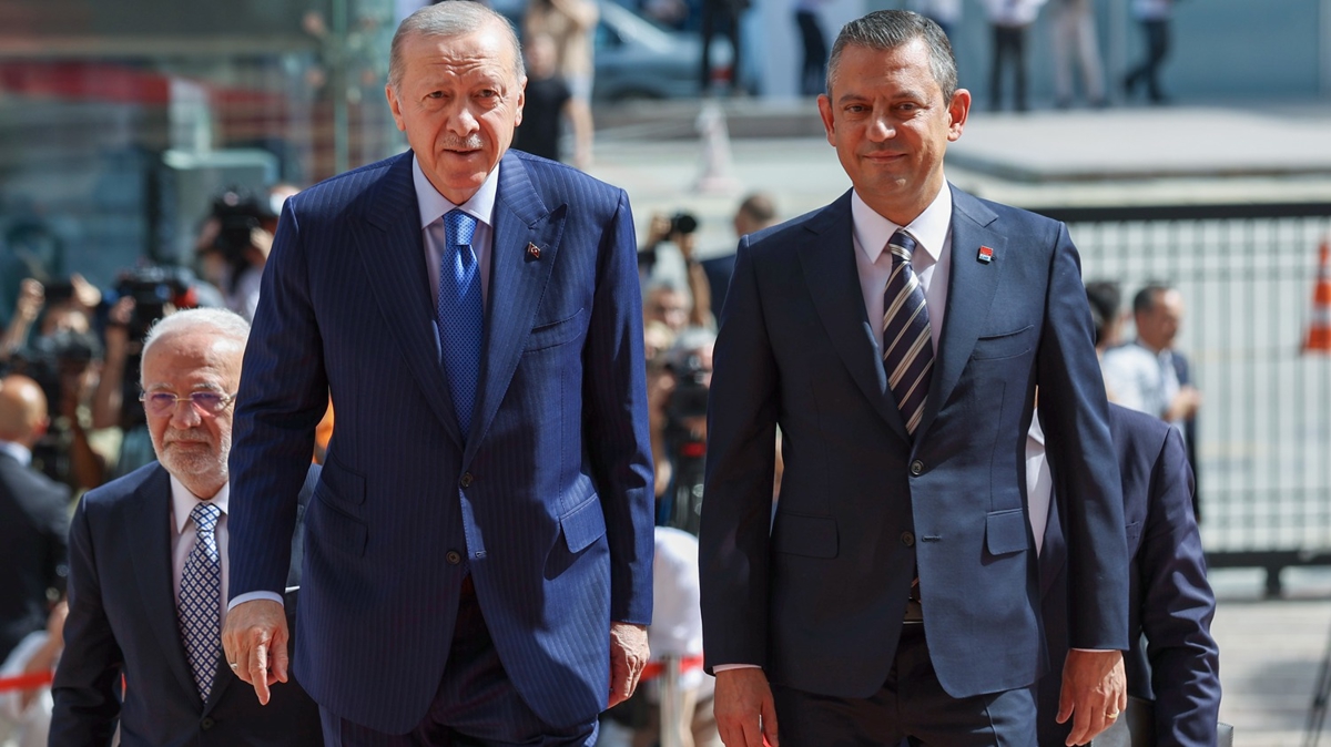 Başkan Erdoğan, 18 yıl sonra CHP Genel Merkezi'ni ziyaret etti. CHP Genel Başkanı Özel'le yapılan görüşmede; yeni anayasa ve ekonomi konuşuldu. Erdoğan, Özel'i Kıbrıs Barış Harekatı yıldönümü kutlamalarına birlikte gitme daveti yaptı.