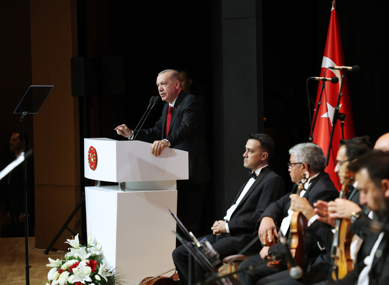 Bir olarak, iri olarak, diri olarak, kardeş olarak, hep birlikte Türkiye olarak gelecek asrı Türkiye Yüzyılı yapma hedeflerine kararlılıkla yürümeye devam edeceklerini dile getiren Erdoğan, dünyayı biçimlendiren siyasi, ekonomik ve güvenlik paradigmalarının yeniden yapılandığı şu dönemde geçmişteki hataları tekrarlamamakta, fırsatları kaçırmamakta kararlı olduklarını söyledi.