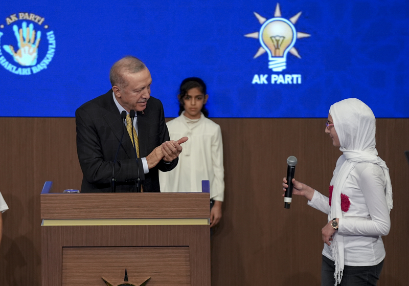 Halepli iki çocuk, yanına geldikleri Cumhurbaşkanı Erdoğan'ı sahneye davet etti. Erdoğan, Halepli çocuklarla birlikte sahneye çıktı.