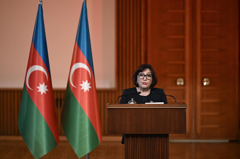 Gafarova, TBMM Başkanı Numan Kurtulmuş ile TBMM'de düzenlenen ortak basın toplantısında konuştu.