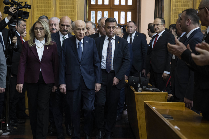 Türkiye'nin kaybedecek bir saniyesi bile bulunmadığının altını çizen Bahçeli, "Türk ve Türkiye Yüzyılı'nda terörün kökü kazınacaktır. Bunun için kefen giyeceksek ona da baş göz üstüne deriz. Yerimizde saymaya, olanla yetinmeye, onun bunun ağzına bakmaya, tarihin gerisine düşmeye, debisi yüksek bir nehir gibi akan hadiselerin içinde edilgen ve etkisiz kalmaya ne hakkımız ne de niyetimiz vardır. Sızlanarak, dövünerek, seyrederek hiçbir şey yapamayız." dedi.