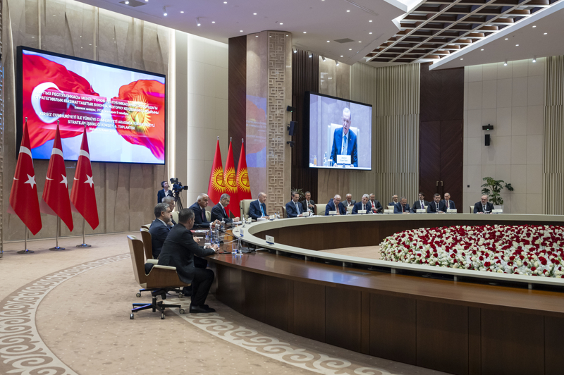 Cumhurbaşkanı Erdoğan, Kırgızistan Cumhurbaşkanı Sadır Caparov ile başkanlık ettiği Türkiye-Kırgızistan ⁠Yüksek Düzeyli Stratejik İşbirliği Konseyi 6. Toplantısı'nda konuştu.