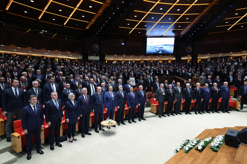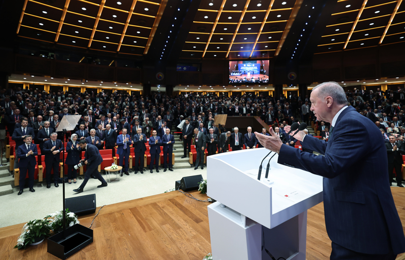 "Burada, milletimizin istikbali için çalışan, ter döken inanmış gönüller var. Türkiye Yüzyılı'nın inşası yolunda hiçbir fedakarlıktan kaçmayan millet ve memleket sevdalısı yol arkadaşlarım var. Türkiye'nin ve Türk ekonomisinin kalbi, bugün bu salonda atıyor. Rabb'im birliğimizi, beraberliğimizi ve muhabbetimizi daim eylesin. Bu vesileyle kuruluşundan bugüne kadar TOBB çatısı altında ülkemizin kalkınmasına, gelişmesine, güçlenmesine destek olan her bir kardeşime, şahsım, ülkem ve milletim adına şükranlarımı sunuyorum. TOBB üyesi olup da rahmeti rahmana kavuşmuş iş dünyamızın kıymetli temsilcilerini rahmetle yad ediyorum."