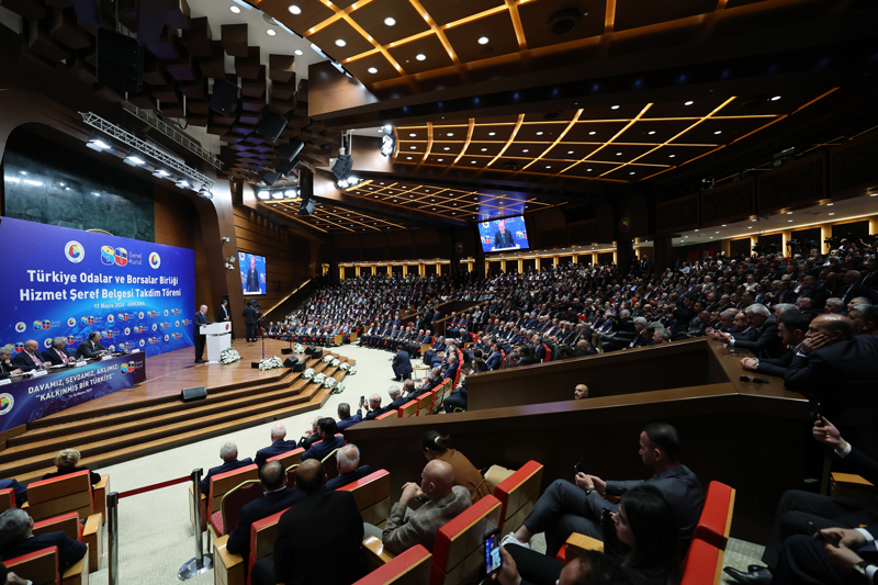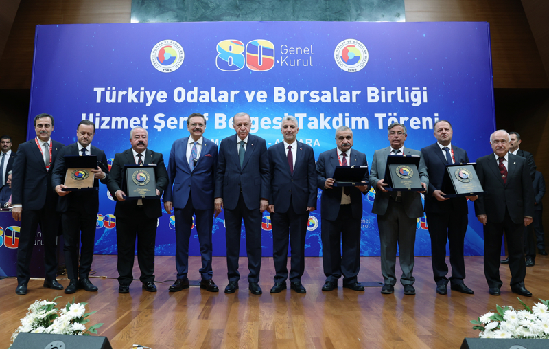 Konuşmaların ardından, Cumhurbaşkanı Erdoğan, TOBB üyesi 58 kişiye "Hizmet Şeref Belgesi" takdim etti.