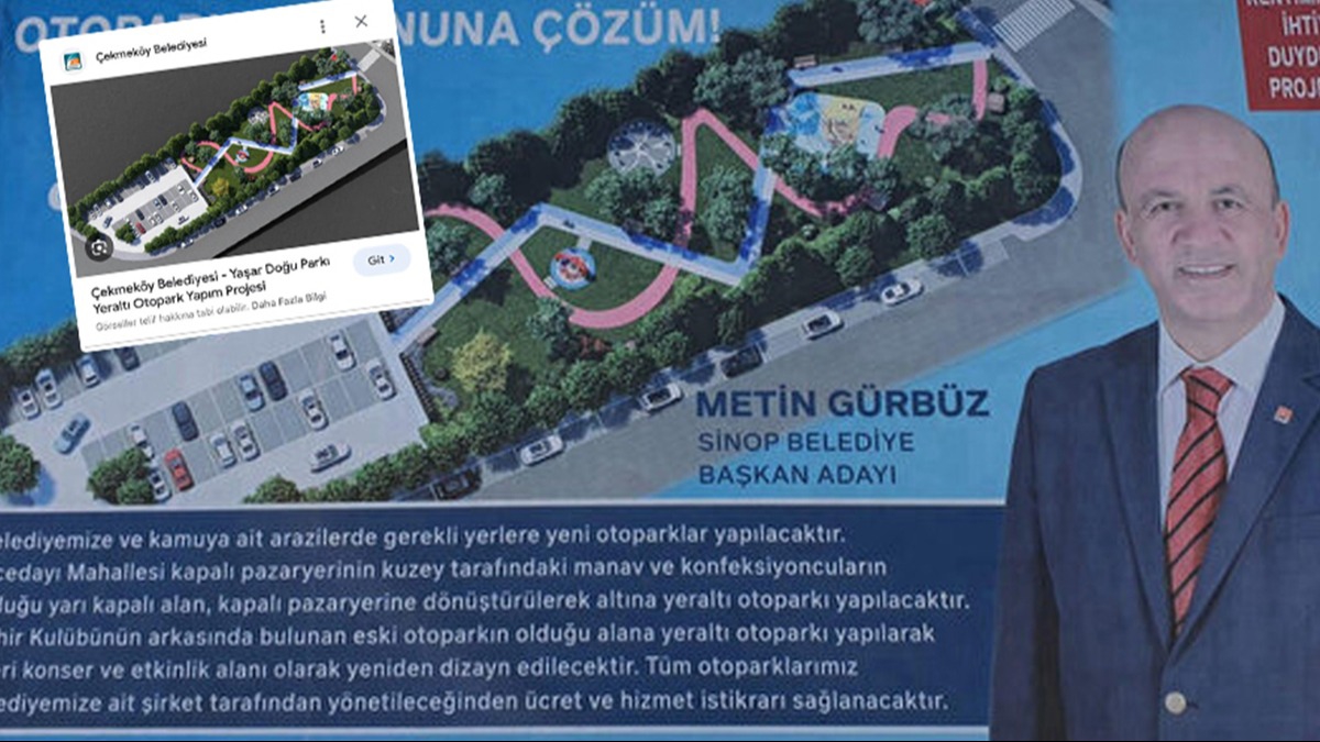 CHP Sinop Belediye Başkan adayı Metin Gürbüz'ün "Otopark sorununa çözüm" diyerek duyurduğu proje 'kopya' çıktı. "Yeni otoparklar yapacağız" diyerek yeraltı otoparkı vaat eden CHP'li Gürbüz'ün proje görselinin AK Parti'den 'çalındığı' öğrenildi.