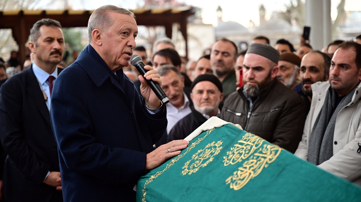 Cenaze törenine gelen Cumhurbaşkanı Erdoğan, merhumun yakınlarına baş sağlığı diledi.