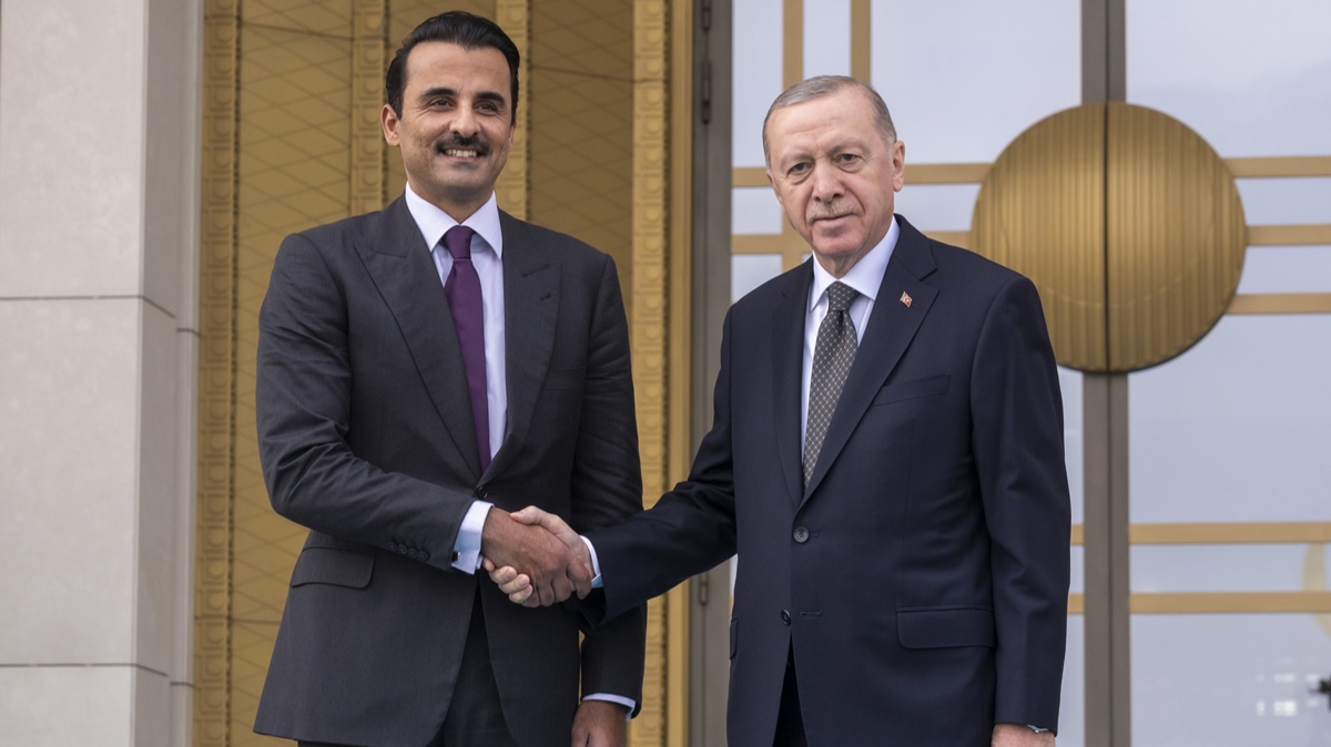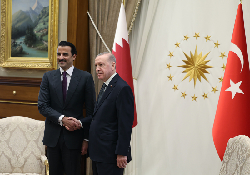 Cumhurbaşkanı Recep Tayyip Erdoğan, Türkiye'ye ziyarette bulunan Katar Emiri Şeyh Temim bin Hamed Al Sani ile Cumhurbaşkanlığı Külliyesi'nde bir araya geldi.