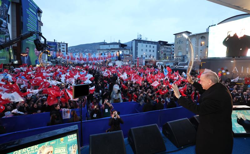 Cumhurbaşkanı Erdoğan, konuşmasının sonunda, "Belediye başkan adaylarımızı sizlere emanet ediyorum. Sizlerin de adaylarımıza çok güçlü destek vereceğinize inanıyorum. 31 Mart akşamı Hakkari'den bu kardeşinize müjde vermeye hazır mısınız?" ifadelerini kullandı.