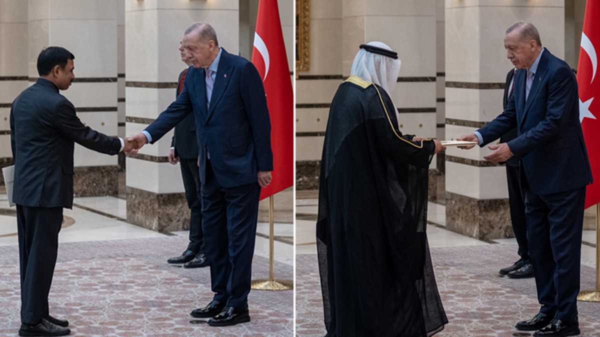 Cumhurbaşkanlığı Külliyesi'ndeki kabulde, büyükelçiler, Erdoğan'a güven mektuplarını sundu.