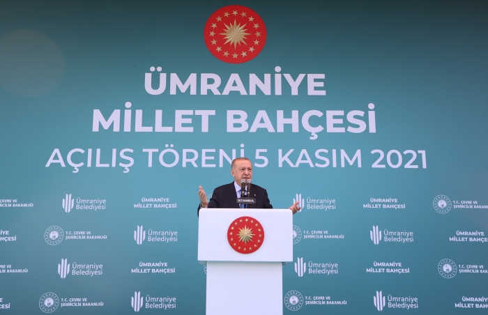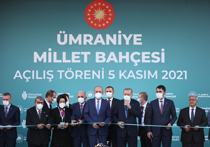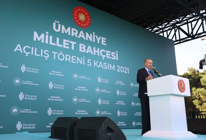 Erdoğan, Ümraniye Millet Bahçesi Açılış Töreni'ndeki konuşmasında, ilçeye 490 bin metrekare büyüklüğe sahip iki millet bahçesi sözü verdiklerini hatırlattı.