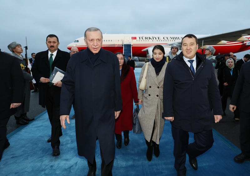Cumhurbaşkanı Erdoğan'ı, Nursultan Nazarbayev Uluslararası Havalimanı'nda, Kazakistan Başbakanı Alikhan Smailov ile Türkiye'nin Astana Büyükelçisi Mustafa Kapucu, Kazakistan'ın Ankara Büyükelçisi Yerkebulan Sapiyev ve diğer yetkililer karşıladı.