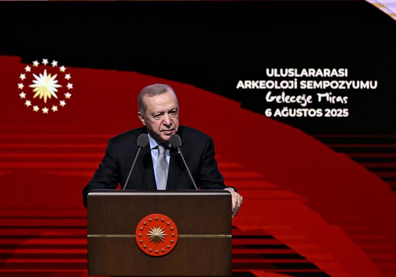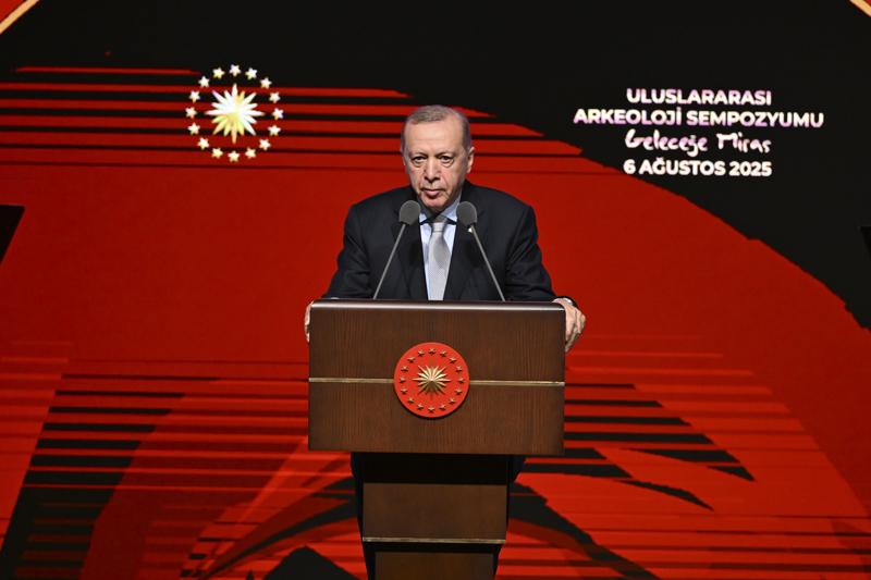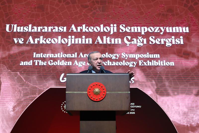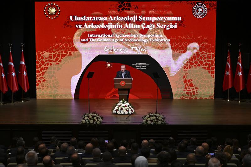 Erdoğan, Türkiye'nin arkeoloji alanında da çok zengin, çok köklü bir mirasın sahibi olduğunu, bu hazineyi ortaya çıkarmanın, belgelemenin, ihtimamla korumanın ve yeni nesillere en güzel şekilde bırakmanın bu bakımdan son derece önemli olduğunu vurguladı.