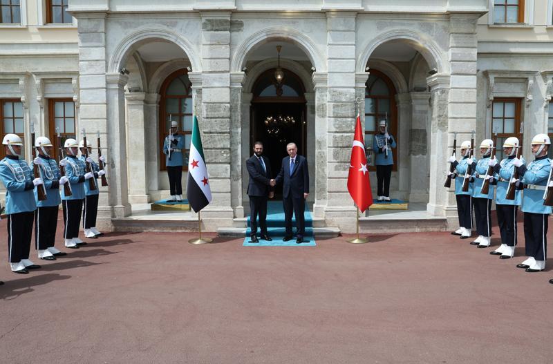 Cumhurbaşkanı Erdoğan, Suriye Cumhurbaşkanı Şara'yı Dolmabahçe Çalışma Ofisi'nde resmi törenle karşıladı.