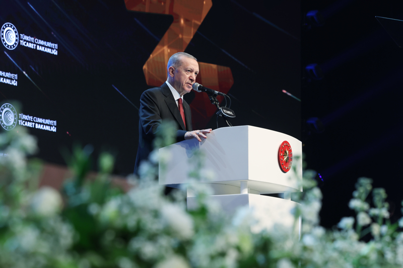 Özellikle ihracat hacminde, hep birlikte tarihi bir başarı hikayesi yazdıklarını ifade eden Erdoğan, "Göreve geldiğimizde yılda sadece 36,1 milyar dolar ihracatı olan ülkemiz, geçen sene 254,2 milyar dolar ihracat gerçekleştirdi. Türkiye bu artış oranıyla OECD ülkeleri arasında ihracatını en hızlı arttıran üçüncü ülke oldu. Küresel ölçekte yaşanan tüm zorluklara ve sorunlara rağmen ihracatımız yükseliş trendini hala devam ettiriyor." dedi.