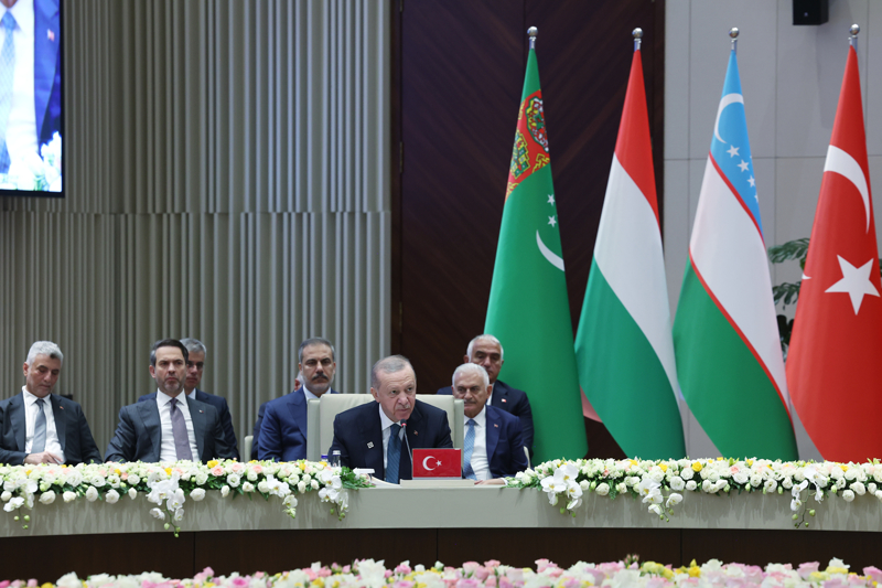 Cumhurbaşkanı Recep Tayyip Erdoğan, Bişkek'teki Cumhurbaşkanlığı Sarayı'nda "Türk Dünyasının Güçlendirilmesi: Ekonomik Entegrasyon, Sürdürülebilir Kalkınma, Dijital Gelecek ve Herkes İçin Güvenlik" temasıyla düzenlenen Türk Devletleri Teşkilatı (TDT) Devlet Başkanları Konseyi 11. Zirvesi'nde konuştu.