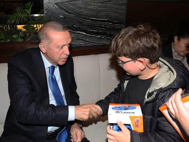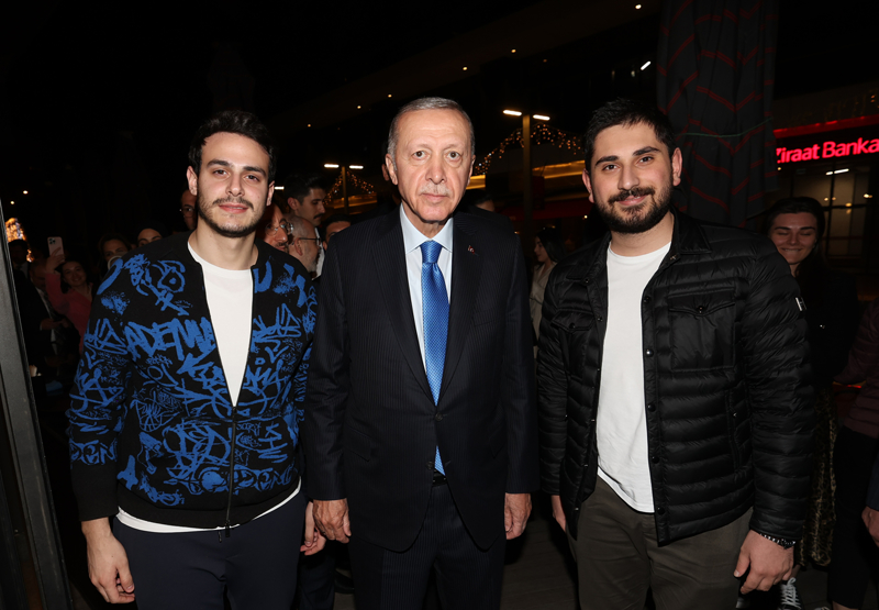 Doğum günü kutlamak için bir araya gelen gençlerle de sohbet eden Erdoğan, yaş günü kutlanan kişiyi tebrik etti.