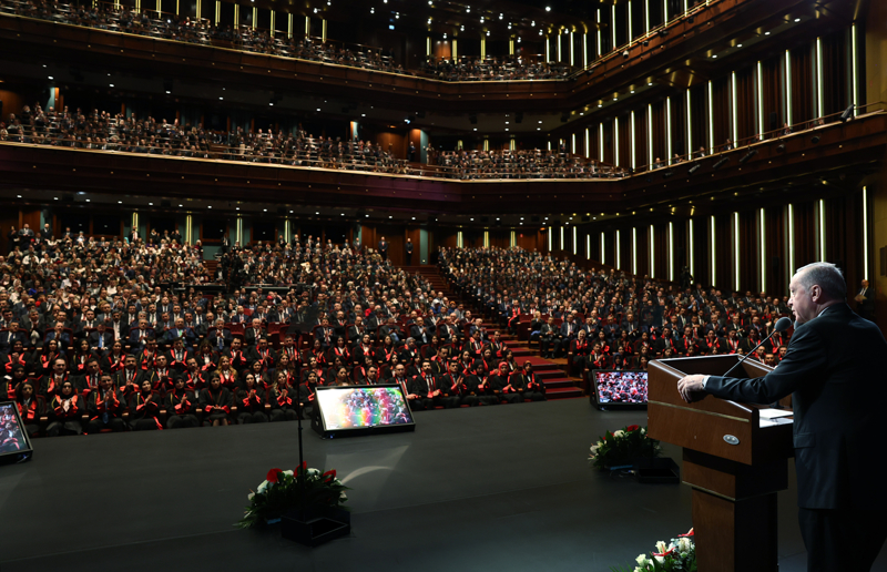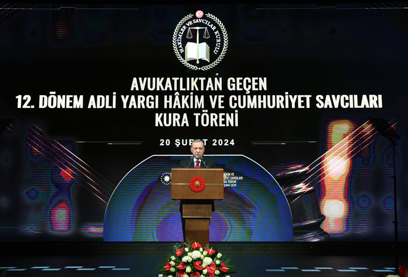 Erdoğan, Beştepe Millet Kongre ve Kültür Merkezi'nde düzenlenen 12. Dönem Adli Yargı Hakim ve Cumhuriyet Savcıları ile İdari Yargı Hakimleri Kura Töreni'ne katıldı.