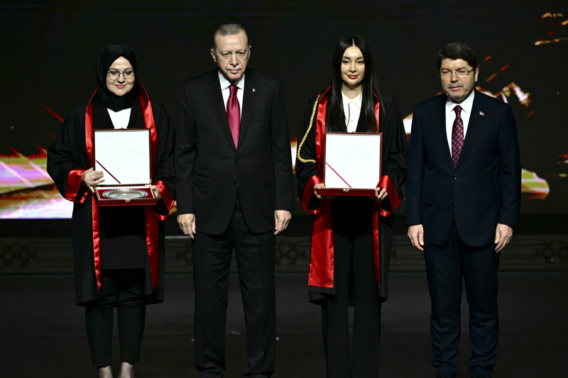 Cumhurbaşkanı Erdoğan, konuşmasının ardından avukatlık mesleğinden geçen 12. Dönem Adli Yargı Hakimi birincisi Büşra Tuna ile 12. Dönem Adli Yargı Cumhuriyet Savcısı birincisi Hümeyra Tekir'e plaketlerini verdi.