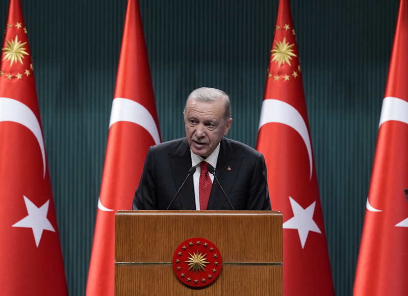 Cumhurbaşkanlığı Külliyesi'ndeki Kabine Toplantısı'nın ardından millete seslenen Erdoğan, istikrarsızlıkların hüküm sürdüğü bir dönemde Türkiye ve etrafının bir barış ve istikrar adasına dönüşmesi için dış temaslara hız kazandırdıklarını belirtti.