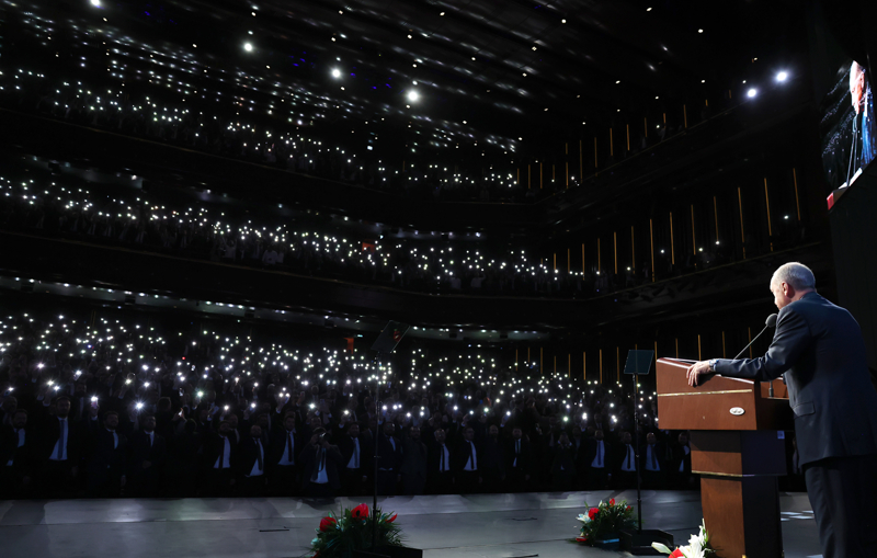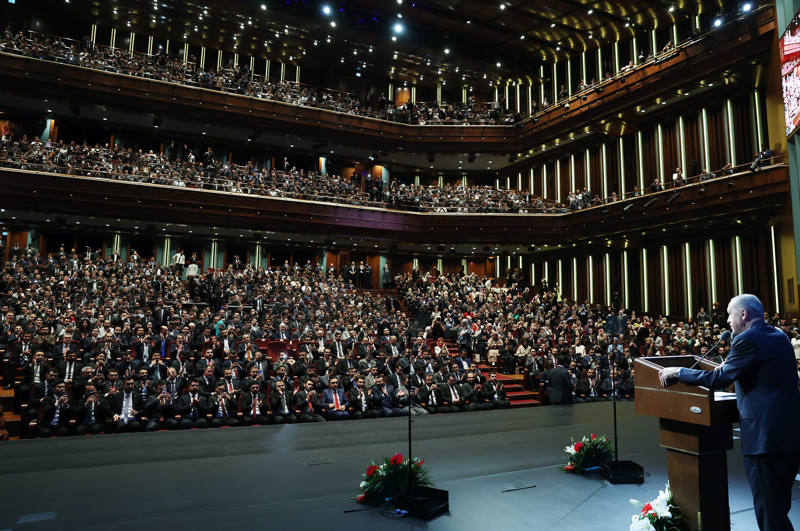 Şimdi bunu Türkiye Yüzyılı şiarıyla yeni bir safhaya taşıdıklarının altını çizen Erdoğan, "Seçimlerden sonra kabinemizi bu vizyona göre oluşturduk. Bakan yardımcılarımızı ve bürokratlarımızı buna göre tayin ettik. Milletvekillerimizi ve parti yönetimimizi buna göre belirledik. Hamlelerimizi bu vizyona ulaşma hedefiyle planladık. Ne yapıyorsak Türkiye Yüzyılı'nın hayata geçirilmesi için yapıyor, tüm adımlarımızı buna göre yapıyoruz." ifadelerini kullandı.