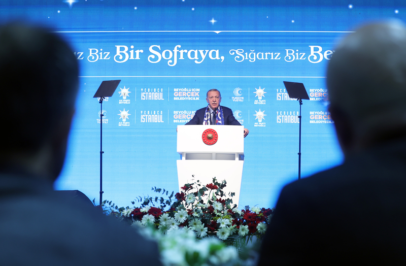 Cumhurbaşkanı Erdoğan, bu seçimlerde sandığa gidecek vatandaşın iradesine müdahale için pek çok kirli pazarlığın yapıldığına şahit olduklarını belirterek "Şu anda öyle kirli pazarlıklar var ki, İstanbul'daki büyükşehir adayı, malum partinin, CHP'nin bu oyunların, bu tezgahların peşinde ama benim halkım bu seçimlerde Ekrem Efendi'ye böyle bir yol göstermeyecek. İnşallah biz Allah'ın izniyle muradımıza ereceğiz. Kimi partiler kendi seçmenlerinin oyunu adeta işporta pazarına çıkardı. Kazanmak değil, kaybettirmek için ortada dolaşanların motivasyon kaynaklarının hiç de masum olmadığı açıktır. Bavul bavul dolarlar, avrolar, bu görüntülerin siyaseti kirlettiği bir ortamda kimse böyle bir tabloyu ilkeyle, davayla, siyasi görüş farklılığıyla izah edemez." değerlendirmesinde bulundu.