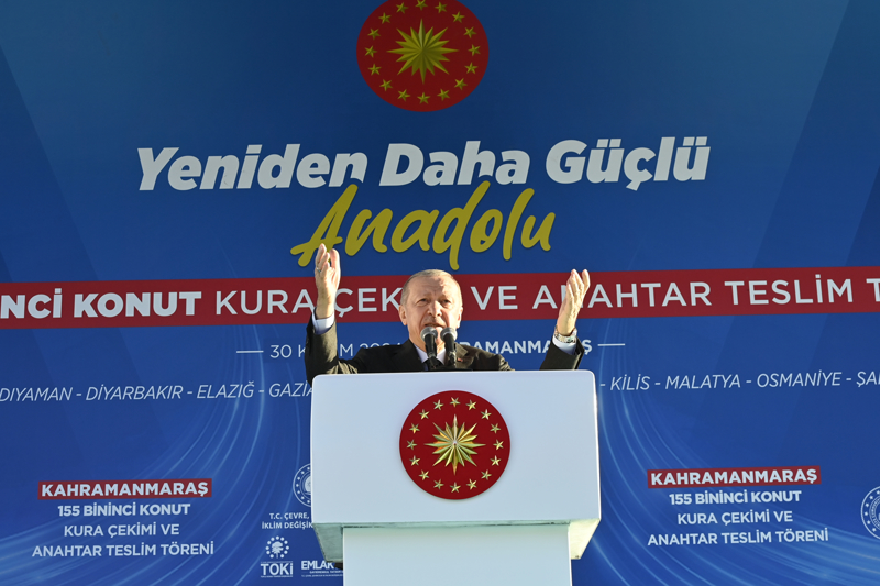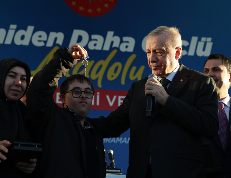 Cumhurbaşkanı Erdoğan, Kahramanmaraş'ta bugün, millete söz verdikleri üzere 155 bininci konutun kurasını çekip, anahtarını teslim edeceklerine dikkati çekti.