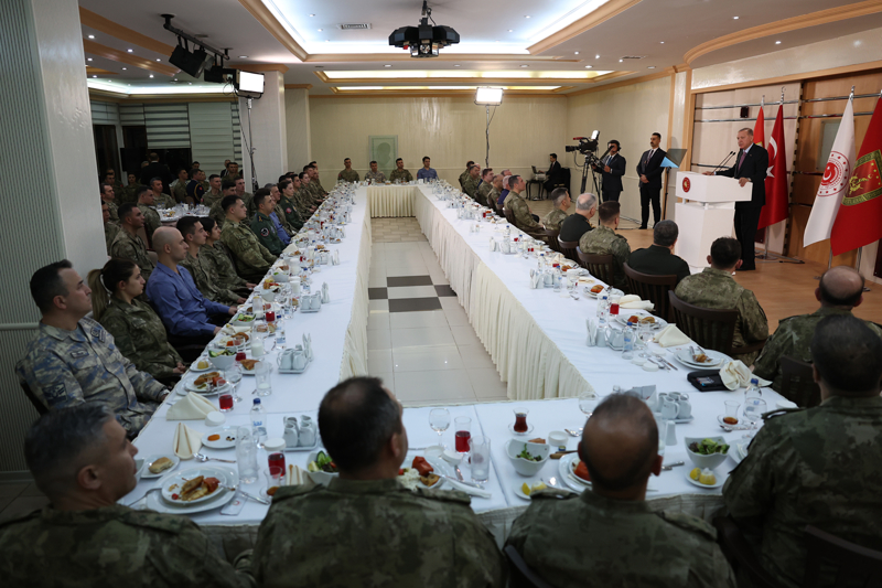 Bölgemizde terörün olmadığı bir iklimi tesis etmeyi sadece şehitlerimize değil aynı zamanda gelecek nesillere yönelik bir borç olarak görüyoruz. Rabb'im yar ve yardımcımız olsun. Askerlik mesleğini seçerek bu kutlu yola yöneldiğiniz için sizleri tebrik ediyorum. Bir cennet bahçesine girercesine toprağa giren aziz şehitlerimizi şu mübarek ramazan akşamında rahmetle yad ediyor, gazilerimize sağlıklı ve huzurlu bir ömür diliyorum. Şahsım, ailem, tüm milletim adına hepinizi sevgiyle, saygıyla selamlıyorum."