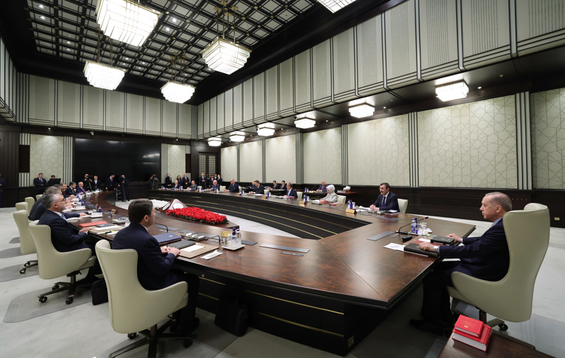 Cumhurbaşkanlığı Külliyesi'ndeki toplantı saat 15.35'te yaklaşık bir buçuk aylık aranın ardından yoğun gündemle toplandı.