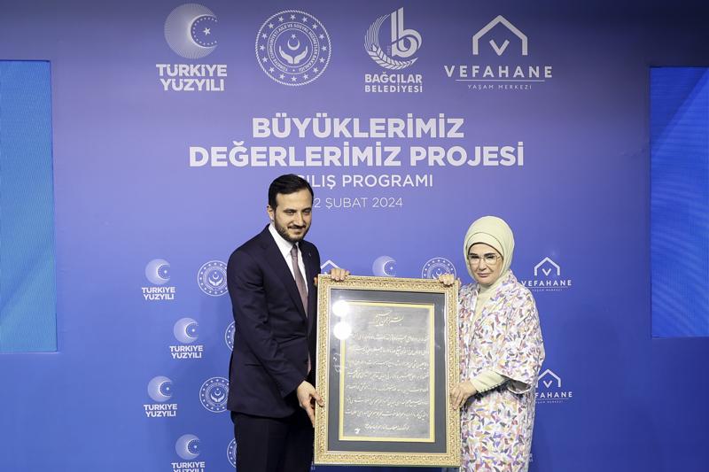 Emine Erdoğan, Bağcılar'daki Vefahane Yaşam Merkezi'nce yürütülen "Büyüklerimiz Değerlerimiz Projesi"nin tanıtımına katıldı.