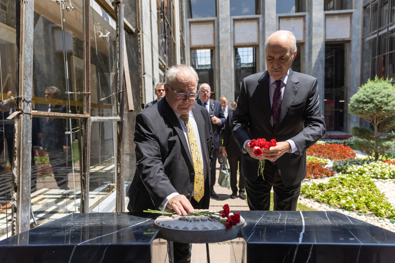 TBMM Başkanı Kurtulmuş, görüşmenin ardından İrlanda Meclis Başkanı O Fearghail ile Genel Kurul salonunu gezdi, 15 Temmuz 2016 gecesi FETÖ mensuplarınca TBMM'ye atılan bombanın düştüğü alana karanfil bıraktı.