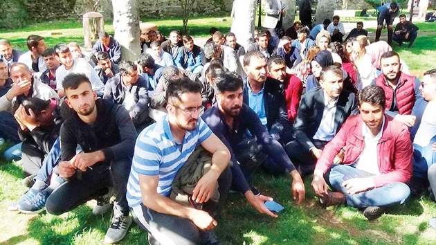Evlerine ekmek götürmek için işlerini geri isteyen belediye personeli oturma eylemi yaptı.
