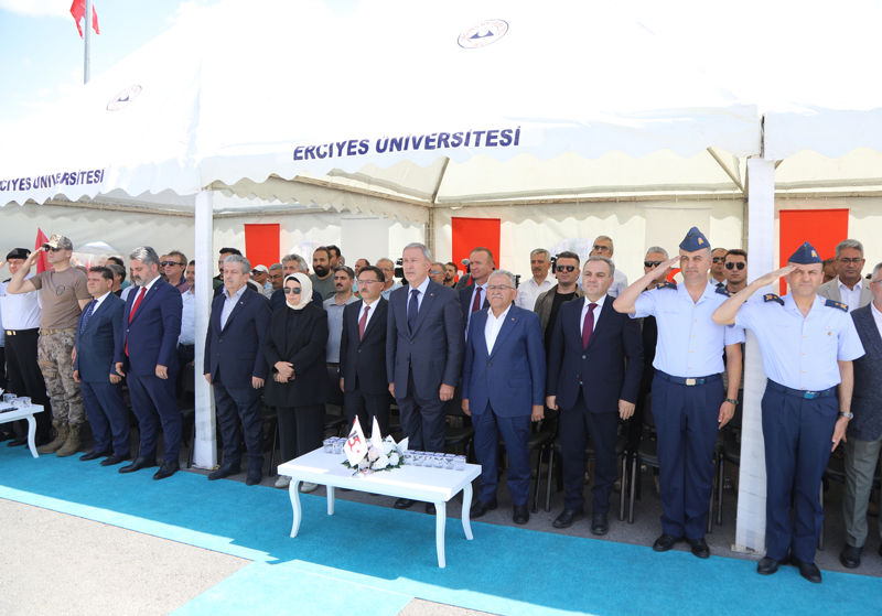 ERÜ 15 Temmuz Şehitler Caddesi'nde saygı duruşunda bulunulması ve İstiklal Marşı'nın okunmasının ardından başlayan programa Kayseri Valisi Gökmen Çiçek, TBMM Milli Savunma Komisyonu Başkanı ve AK Parti Kayseri Milletvekili Hulusi Akar, AK Parti Kayseri milletvekilleri Sayın Bayar Özsoy ile Ayşe Böhürler, Kayseri Büyükşehir Belediye Başkanı Memduh Büyükkılıç, ERÜ Rektörü Prof. Dr Fatih Altun, protokol üyeleri, akademisyenler ve vatandaşlar katıldı. Programın başlangıcında şehitler için Kur'an-ı Kerim okundu, dualar edildi.