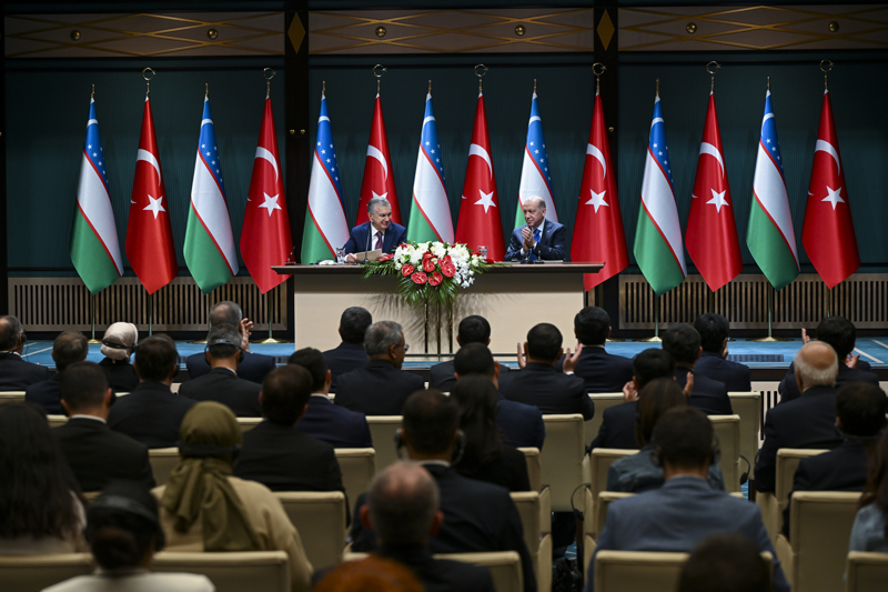 Mirziyoyev, "(Cumhurbaşkanı Erdoğan'la) Geniş kapsamlı stratejik ortaklığın derinleştirilmesi konusunda tarihi belgeyi imzaladık." dedi.