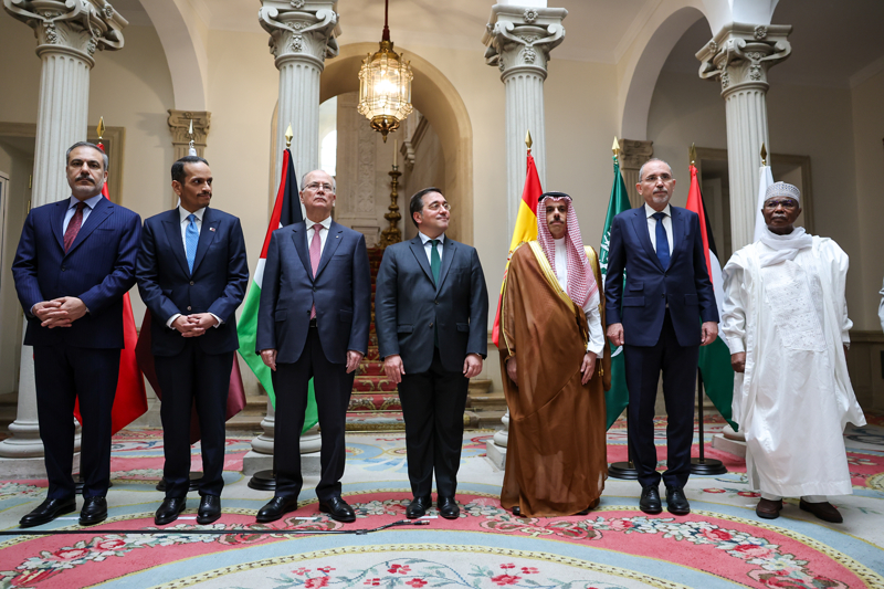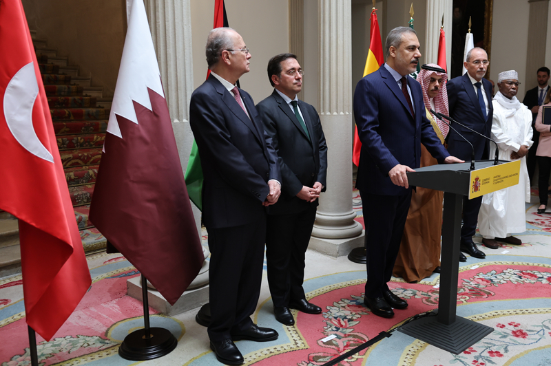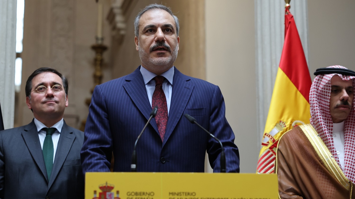 Bakan Fidan, İspanya'nın Filistin devletini tanıma kararı vesilesiyle ilettiği davet çerçevesinde, İslam İşbirliği Teşkilatı (İİT) ve Arap Birliğinin oluşturduğu Gazze Temas Grubu üyeleriyle İspanya Başbakanı Pedro Sanchez ile Madrid'de bir araya gelmesinin ardından düzenlenen ortak basın toplantısında konuştu.