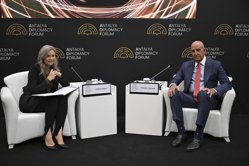 ABD'nin Ankara Büyükelçisi ve Suriye Özel Temsilcisi Tom Barrack, Anadolu Ajansının (AA) "Global İletişim Ortağı" olduğu, Belek Turizm Bölgesi'ndeki NEST Kongre Merkezi'nde düzenlenen Antalya Diplomasi Forumu (ADF) 2026 kapsamında moderatörlüğünü TRT World kıdemli sunucusu Andrea Sanke'nin yaptığı programda konuştu.