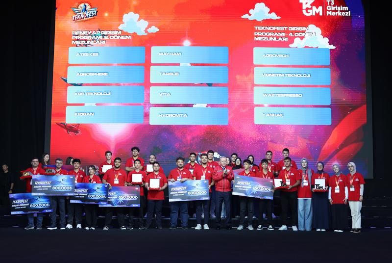 Cumhurbaşkanı Erdoğan, konuşmasından önce Milli Savunma Bakanı Yaşar Güler, Sanayi ve Teknoloji Bakanı Mehmet Fatih Kacır, Milli Eğitim Bakanı Yusuf Tekin, Gençlik ve Spor Bakan Osman Aşkın Bak, Tarım ve Orman Bakanı İbrahim Yumaklı, Aile ve Sosyal Hizmetler Bakanı Mahinur Özdemir Göktaş, İçişleri Bakanı Ali Yerlikaya, Sağlık Bakanı Kemal Memişoğlu, Ticaret Bakanı Ömer Bolat, Enerji ve Tabii Kaynaklar Bakanı Alparslan Bayraktar, TEKNOFEST Yönetim Kurulu ve Türkiye Teknoloji Takımı Vakfı (T3 Vakfı) Mütevelli Heyeti Başkanı Selçuk Bayraktar, Baykar Genel Müdürü Haluk Bayraktar, bazı komutanlar ile festival paydaşlarıyla sahnede TEKNOFEST pozu vererek fotoğraf çektirdi.