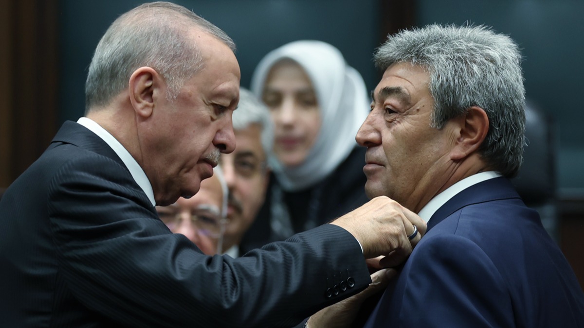 Dursun Ataş'a rozetini AK Parti Grup Toplantısı'nda Cumhurbaşkanı Recep Tayyip Erdoğan taktı.