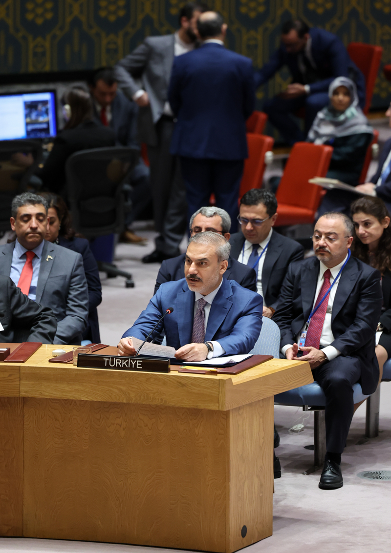 Fidan, Güvenlik Konseyi'nin uluslararası barış ve güvenliğin korunmasındaki birincil sorumluluğunun altını çizerek, "Ne yazık ki Konsey şu ana kadar aldığı kararları İsrail'in uygulamasını sağlamakta başarısız olmuştur. Silah ambargosu yok, zorlayıcı tedbirler yok." ifadelerini kullandı.