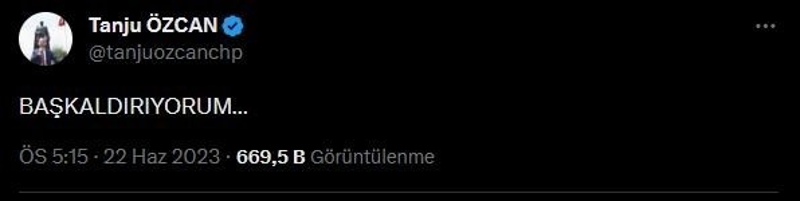 İhraç isteminin ardından tek kelimelik paylaşım yapan Tanju Özcan "Başkaldırıyorum" dedi.