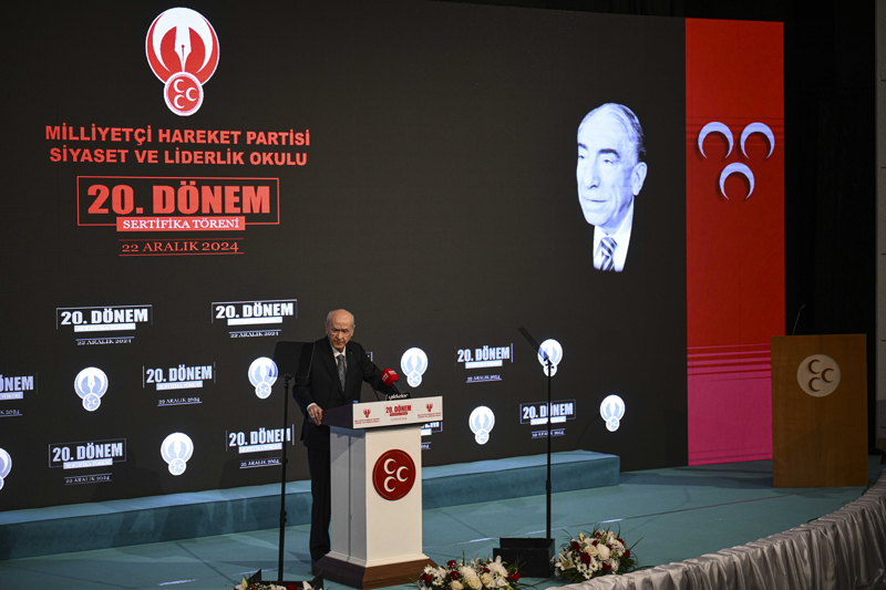 Bahçeli, MHP Genel Merkezinde düzenlenen Siyaset ve Liderlik Okulu'nun 20. Dönem Sertifika Töreni'ne katıldı.